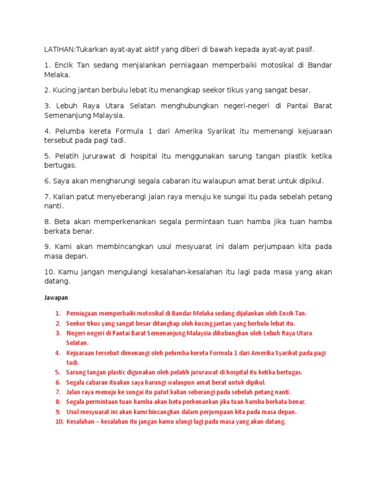 Soalan Latihan Ayat Aktif Dan Ayat Pasif 2020 Pdf